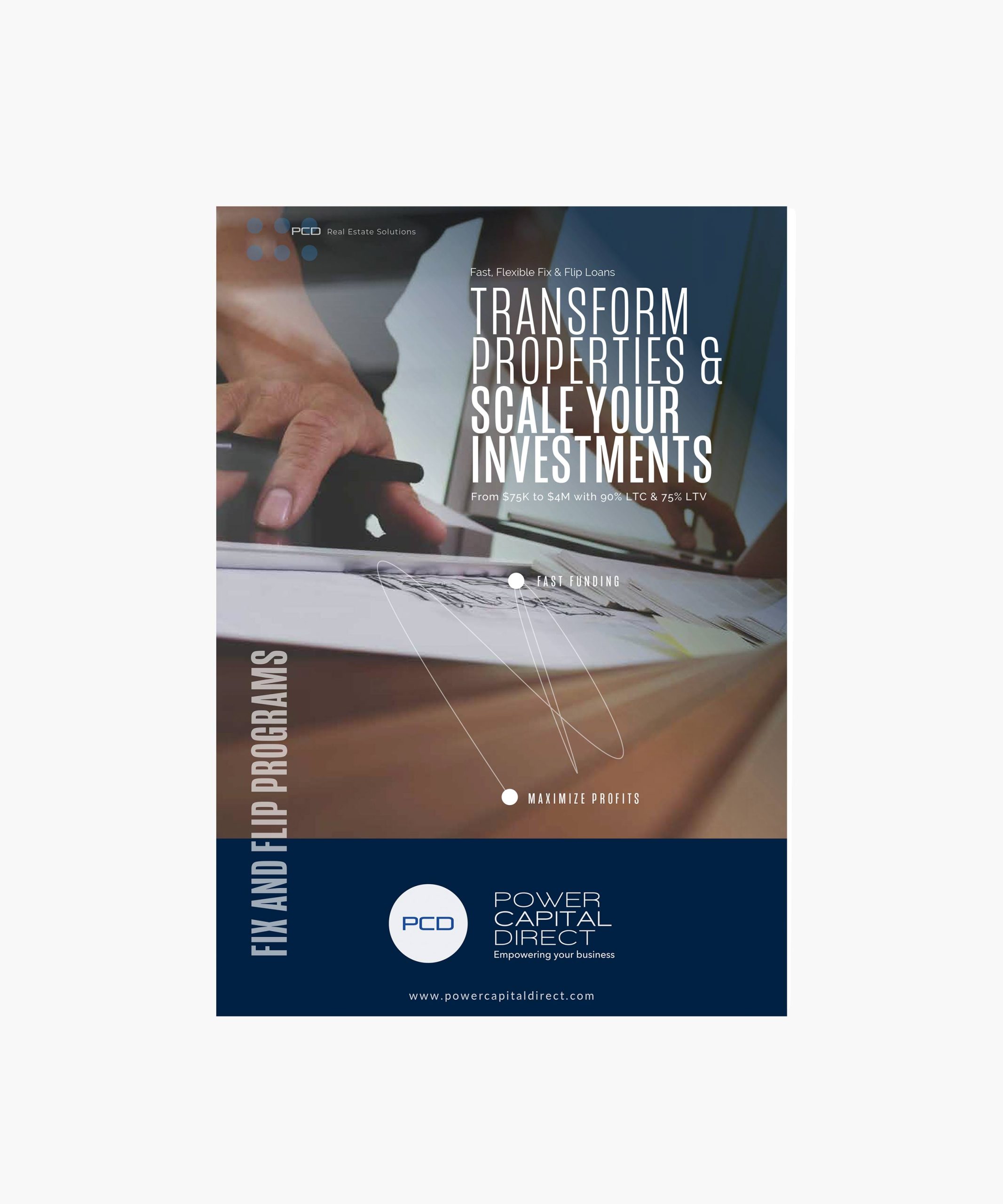 In the fast-paced real estate market, speed and leverage are everything. Power Capital Direct’s Fix & Flip Loan Program is built to give investors, developers, and rehabbers the capital they need to move quickly, compete with cash buyers, and maximize profits. With streamlined approvals and minimal documentation, you can secure funding in days, not weeks—allowing you to focus on closing deals and scaling your business.